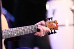 先日のHUKUROHコンサートのときに撮影された画像の中に、おもしろいアングルのものがありました。僕が、いかに指(+手のひら)に汗をかくかという証拠写真! よ~く見ると、フレットが汗で濡れているのが分かると思います。ので、ライヴでは、顔の汗拭き用ではなく、手のひらを拭くハンカチ、もしくはタオルが必須なんですよね。ギターのネックもべた~っとなります。ゆえ、弦も長持ちしないんですよね。♪なんでだろ~、なんでだろ~(笑)。